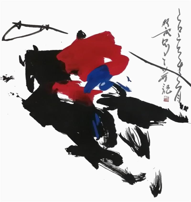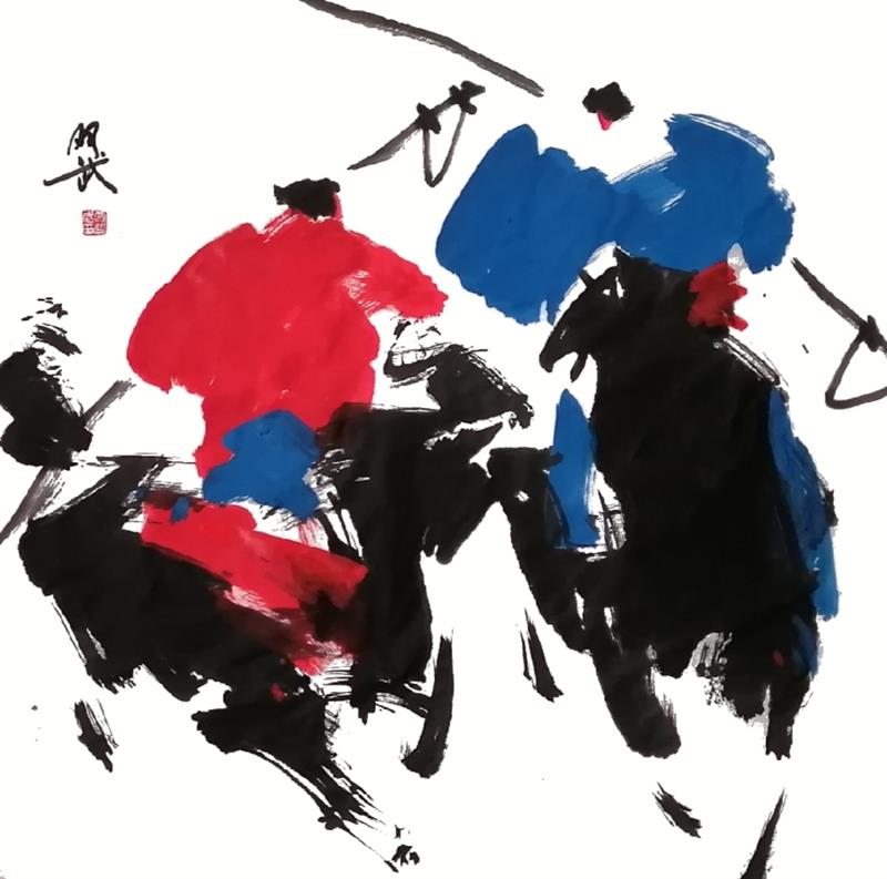 有這樣一位畫家,他的作品個(gè)性鮮明,有很強(qiáng)烈的時(shí)代感和現(xiàn)代藝術(shù)氣息。他涉獵題材廣泛,尢善畫馬、牛等物。他運(yùn)用焦墨,重墨刻畫物象,突出了表現(xiàn)對(duì)象的動(dòng)、勢(shì)、神。團(tuán)塊兒的組合、運(yùn)動(dòng)不僅是他造型的一大特點(diǎn),同時(shí)也給觀者很強(qiáng)的視覺沖擊力。有媒體稱他“大筆大墨大寫意”。他筆下的奔馬似有雷霆萬鈞之勢(shì),他筆下的牛又恰有萬夫不當(dāng)之勇。他的作品傳遞出去的永遠(yuǎn)是陽剛,奮發(fā)向上,百折不撓之精神。他就是我國(guó)當(dāng)代青年大寫意畫家賈雙武。