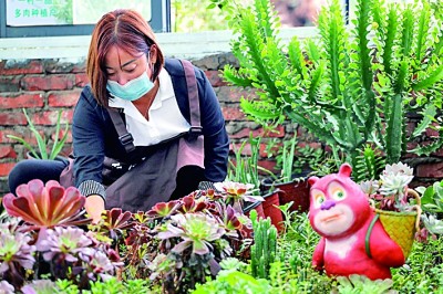 農民在河南省寶豐縣龍王溝鄉村振興示范區多肉種植園打理多肉植物。新華社發