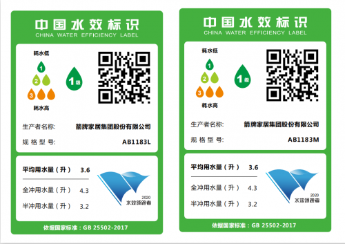 我們以箭牌衛(wèi)浴入選的產(chǎn)品AB1295和AB1183為例,全新沖水結(jié)構(gòu)設計,提升下水高度,增加水的重力勢能,斜坡式下流水道,減少勢能流失,單次平均用水量為3.6L,比國家一級水效等級產(chǎn)品平均用水量4L還要低。