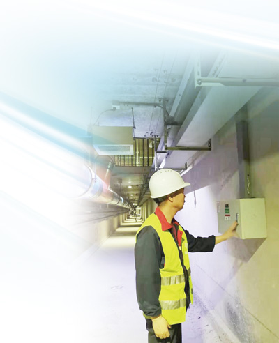 巡檢正式開始,首先進(jìn)入的是水艙,高約2.8米、寬約3米,兩側(cè)分別是自來水管和再生水管。往前走了一會(huì)兒,出現(xiàn)一個(gè)扶梯,劉冬起爬了上去,“這里是設(shè)備夾層,布置了部分通風(fēng)和電氣設(shè)備,每次都需要爬上來看看是否運(yùn)行正常?!庇幸换?,他發(fā)現(xiàn)應(yīng)急照明柜里的電池過熱,幸好及時(shí)處理,避免了潛在的安全隱患。