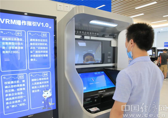 圖為龍華區(qū)稅務(wù)局第一稅務(wù)所內(nèi),一位納稅人正在通過自助辦稅VRM終端辦理業(yè)務(wù)。