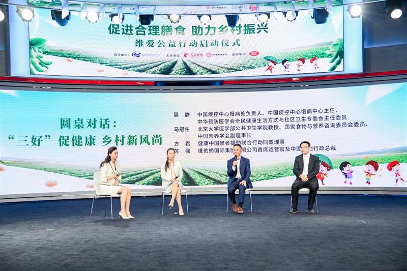 圓桌論壇環(huán)節(jié),中國疾控中心慢病處負責人、中國疾控中心慢病中心主任吳靜,北京大學醫(yī)學部公共衛(wèi)生學院教授、國家食物與營養(yǎng)咨詢委員會委員馬冠生,健康中國患者援助聯(lián)合行動同盟理事方君,維他奶國際集團有限公司首席運營官及中國內(nèi)地行政總裁蘇強共同圍繞“營養(yǎng)促健康 鄉(xiāng)村新風尚”展開交流分享,助力營養(yǎng)健康事業(yè)與鄉(xiāng)村振興的有效銜接,推動形成健康生活鄉(xiāng)村新風尚。