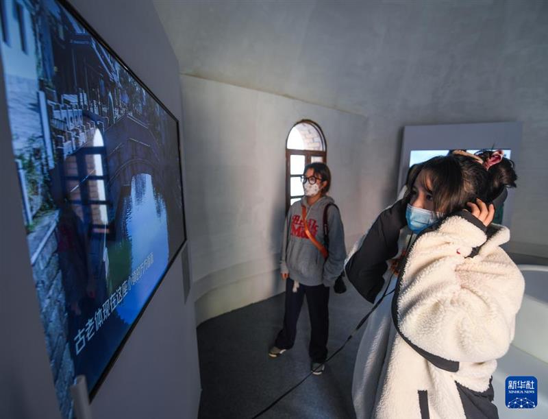 11月20日,游客在杭州市余杭區瓶窯鎮的特制“窯洞電影院”內觀看電影短片。新華社記者 徐昱 攝