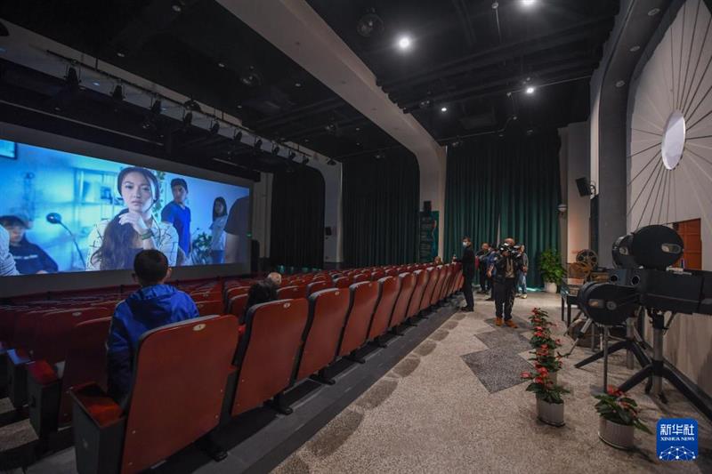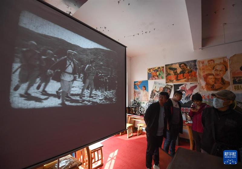 11月20日,在杭州市余杭區瓶窯鎮的老街電影博物館內,游客在觀看老式電影放映機放映的老電影。新華社記者 徐昱 攝