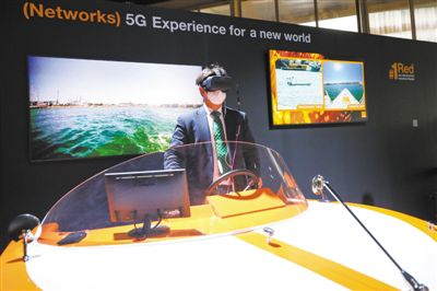 圖為在西班牙巴塞羅那,工作人員在世界移動通信大會法國電信公司展廳演示利用5G技術搭配VR(虛擬現實)眼鏡實現遠程遙控駕駛(資料照片)。